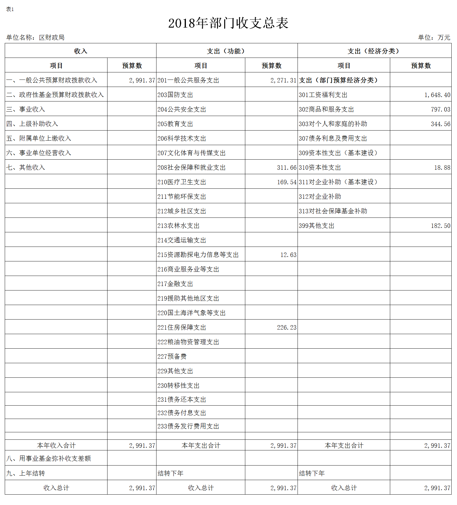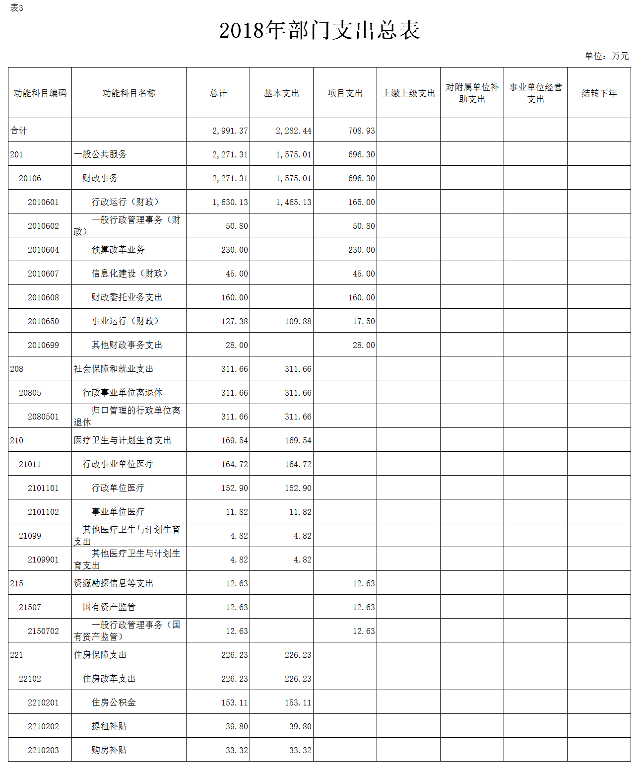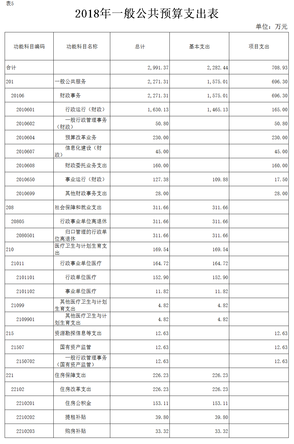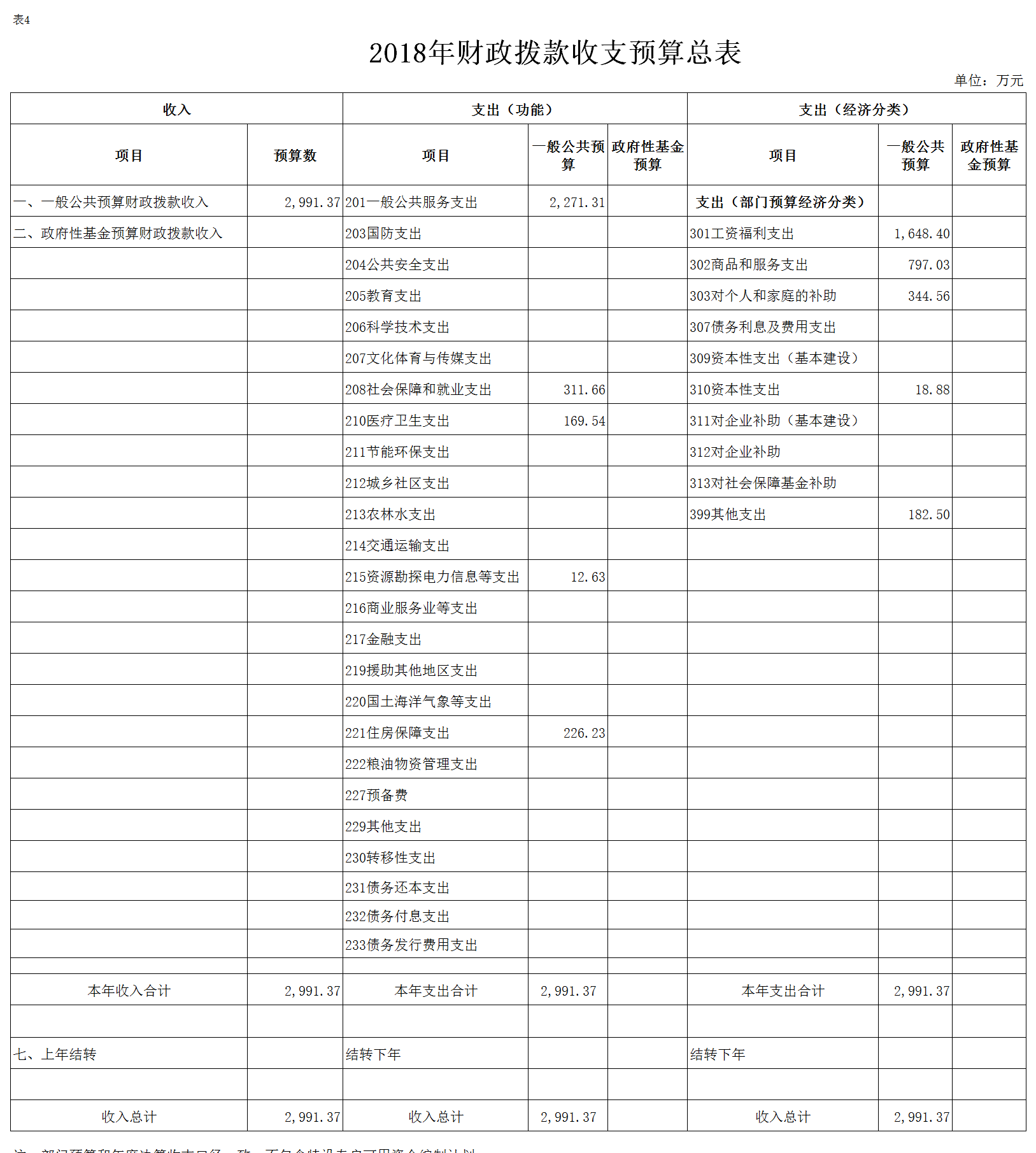 2018年一般公共预算财政拨款(补助)预算数2,991.37 万元,安排情况如下: