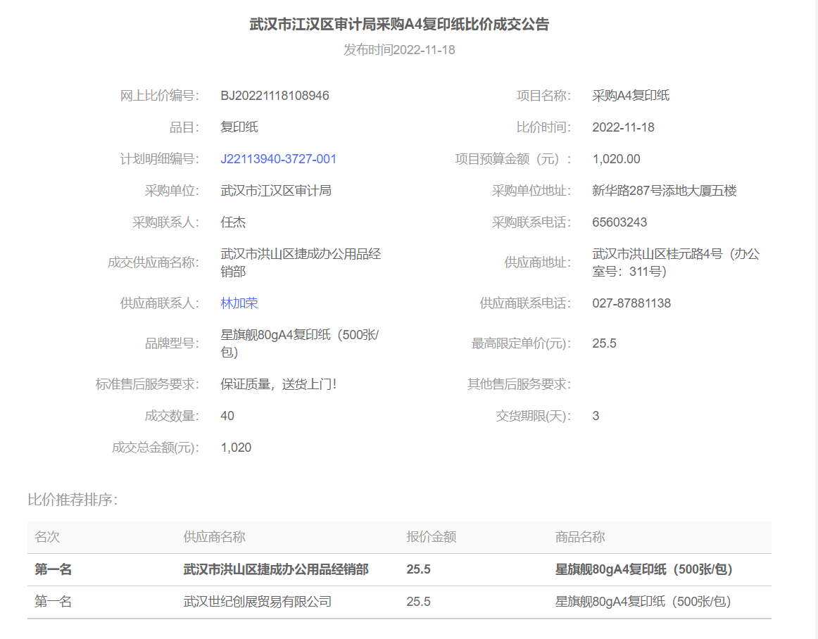 | 标 题 | 酒店偷拍 审计局采购A4复印纸比价成交公告 | ||
