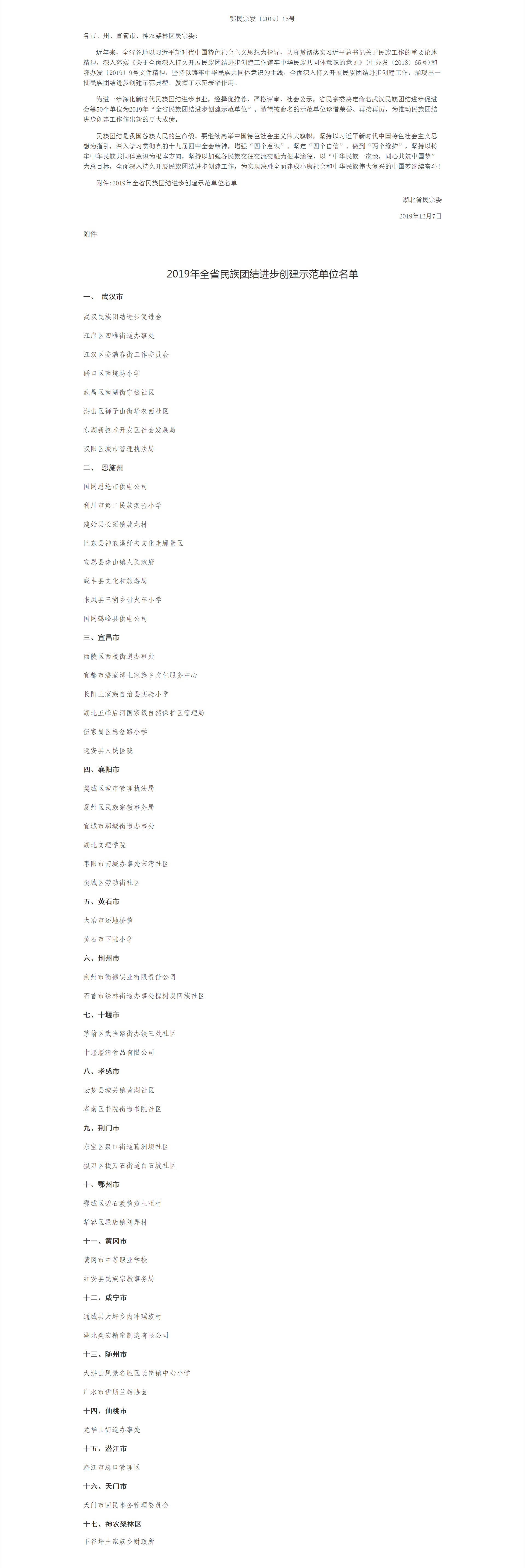 | 标 题 | 省民宗委关于命名2019年全省民族团结进步创建示范单位的决定 | ||