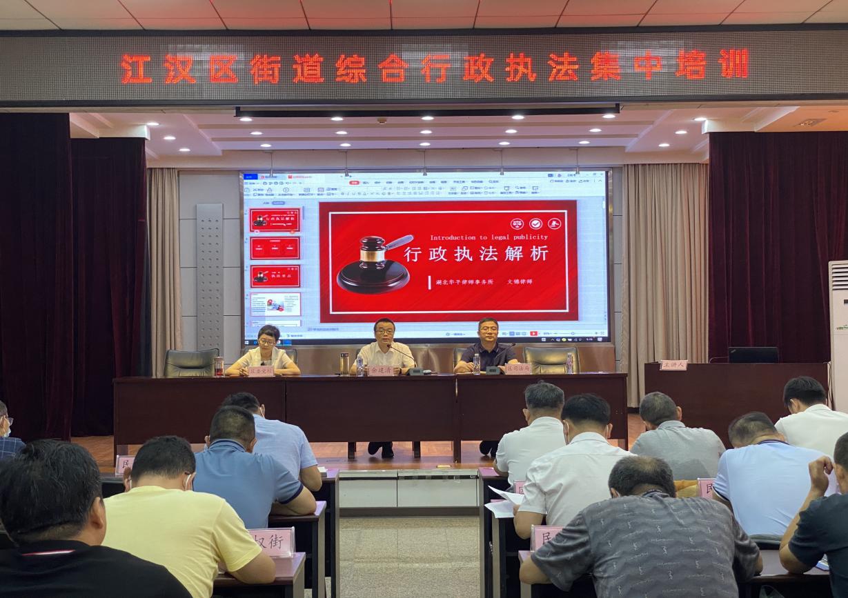 赋权事项中城市管理领域占89项,数量最多,日常执法过程中遇到的问题也最突出,区城管局邀请湖北华平律师事务所合伙人、副主任文锦律师,结合执法案例讲解操作流程和执法技能进行授课。
