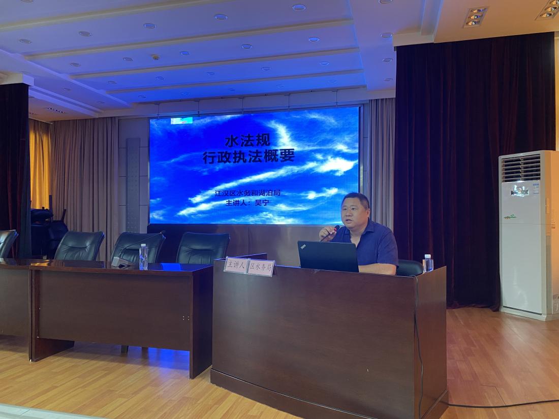 水执法领域赋权事项14项,区水政监察大队副队长、二级主任科员吴宁围绕执法依据、执法程序、常见问题和法制审核范围开展授课。