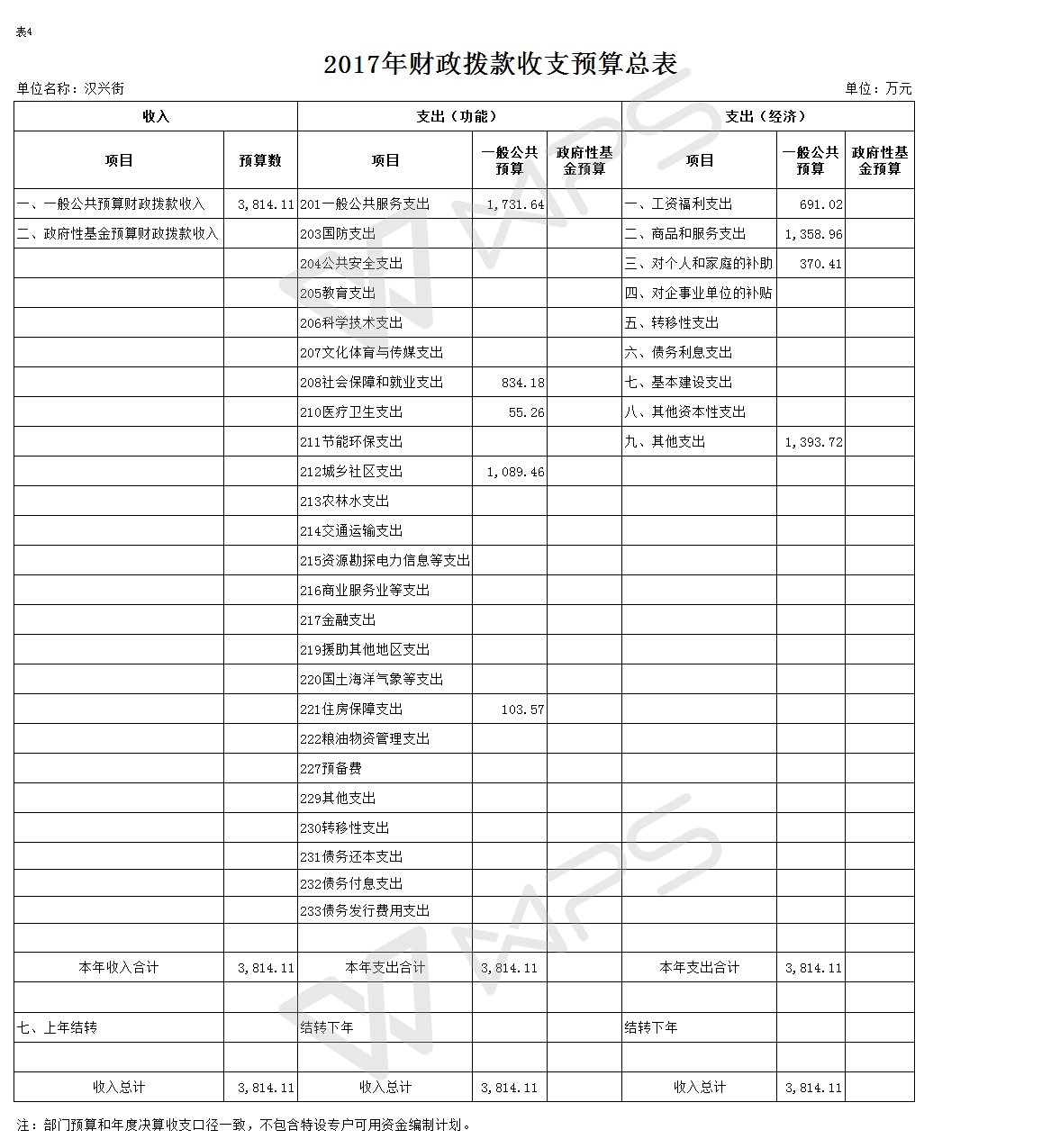 汉兴街办事处由单位本级预算组成,行政单位1个。