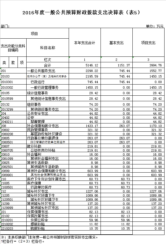 五、一般公共预算财政拨款支出决算表(表5)