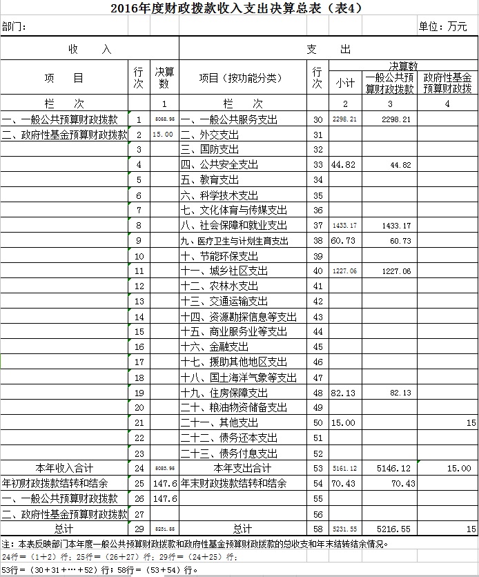 四、财政拨款收入支出决算总表(表4)