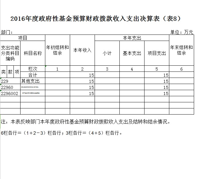 2016年政府性基金预算财政拨款上年结转和结余 0万元,本年收入15万元,本年支出15万元,年末结转和结余 0 万元。具体支出情况为: 用于社会福利的彩票公益金支出15万元。