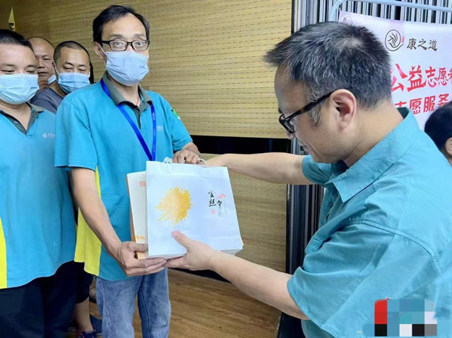 随后,工会负责人为大家送上来自湖北恩施的菊花茶、硒蛋、绿豆等防暑降温物品,叮嘱大家在户外工作注意防暑降温、交通安全,加强自我保护。