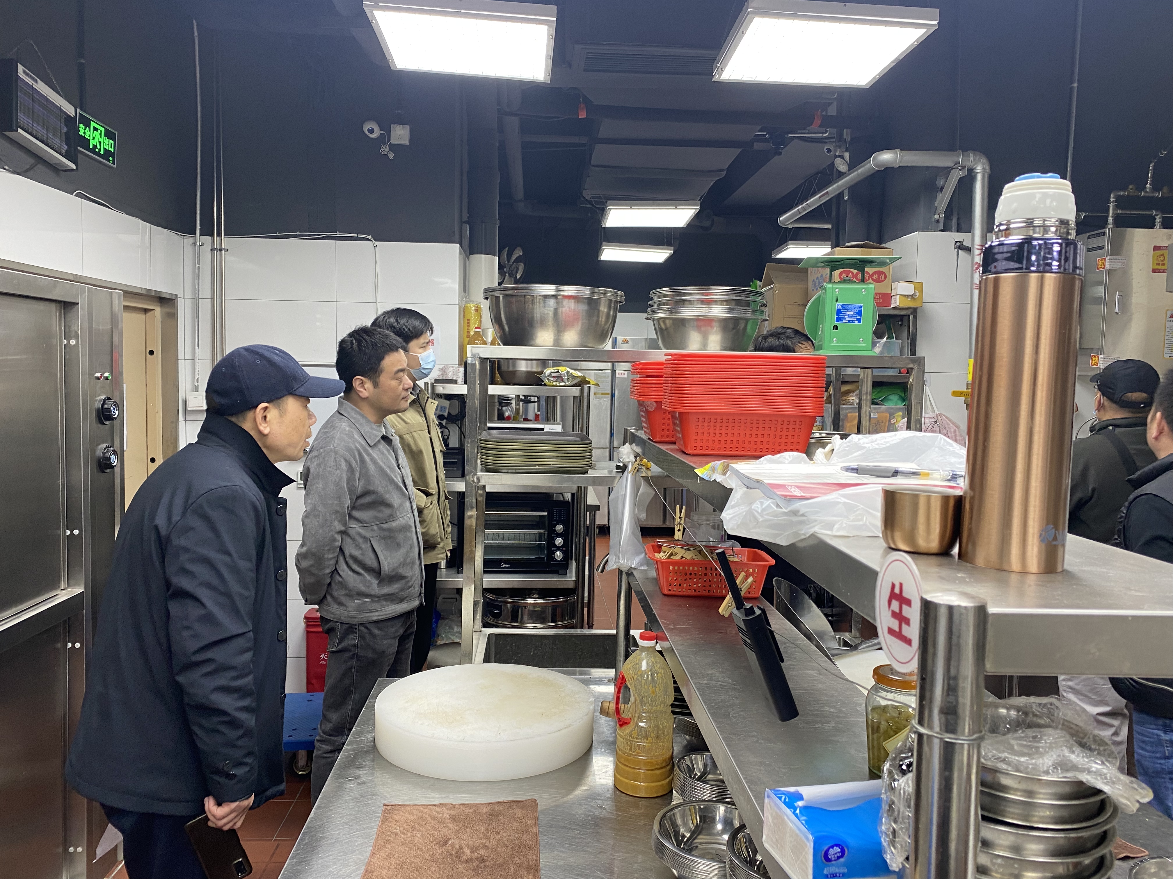 对邬家社区c级餐饮企业进行消防安全检查,检查况如下:一. 祺顺楼餐饮管理有限公司1.灭火器未摆放在随手方便处。2.蒸菜工位电源插座绝缘损坏。3.临时线路捆绑在消防管道上。二 .潮牛鲜森餐饮店1.店内疏散指示标识被遮挡。2.风机控制柜无跨接。3.绞肉机皮带扎无防护。4.蒸菜柜点检处无点件记录。5.自动切片机使用工业线手套。6.洗碗池污水未处理。三. 兴聪餐饮店1.灭火器无点检表。2.厨房内灭火器存放位置不当。3.配电箱被垃圾桶阻挡。四.大米先生餐厅1.电柜上悬挂了许多杂物。2.大厅内未见应急照明灯。五.老村长私募餐厅1.天然气管道上杂物堆积。2.天然气报警器未打开。3.二楼灭火栓箱变形。六.鑫小城故事餐饮店1.天然气放散管损坏。2.厨房管道未作防护。3.蒸菜间拉了条临时电线。七.峰味小厨餐管1.火灾报警器机器上有故障未处理。2.天然气管道上放置有杂物。3.未使用天然气阀门未封堵。4.走道疏散标志灯未通电。对以上问题安监员现场下达整改通知书要求负责人限期整改。