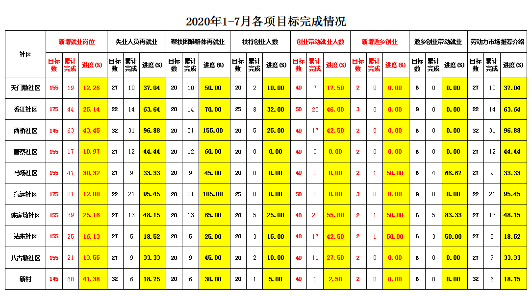 | 标 题 | 劳动就业社区1-7月完成情况 | ||