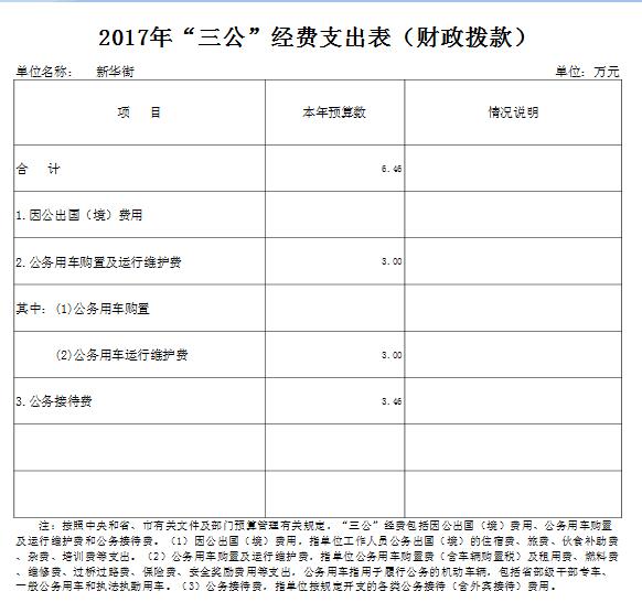 2017年部门财政拨款资金安排“三公”经费预算6.46万元。具体情况如下: