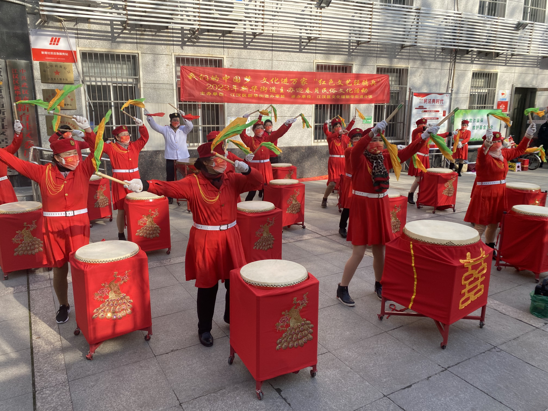 为深入贯彻落实党的二十大精神,传承中国优秀传统文化,助力街区高质量发展,1月17日,武汉市新华街道分馆主办“我们的中国梦 文化进万家”红色文艺轻骑兵迎春月民俗文化活动,为基层而鼓,为百姓而舞。把浓浓的年味、深深的祝福作为新年礼物送到群众中去,体现有温度、有内涵的“文化年货”。