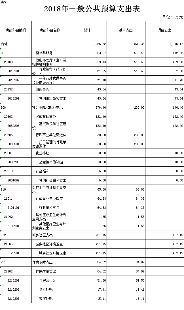 表5.2018年一般公共预算支出表