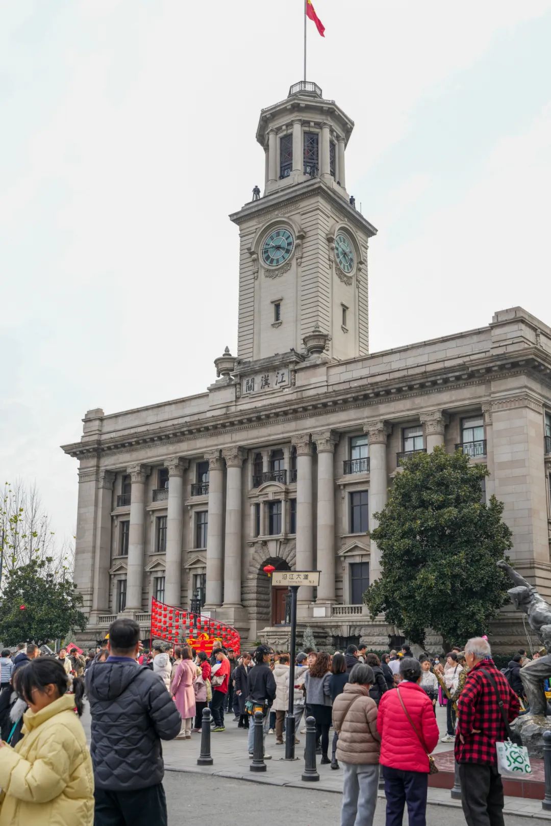 在朱一龙打卡过的江汉路“烟火巷”美食区,春节假期每天大排长龙。百年文化地标江汉关大楼前,亦是相机“咔嚓”声不断。