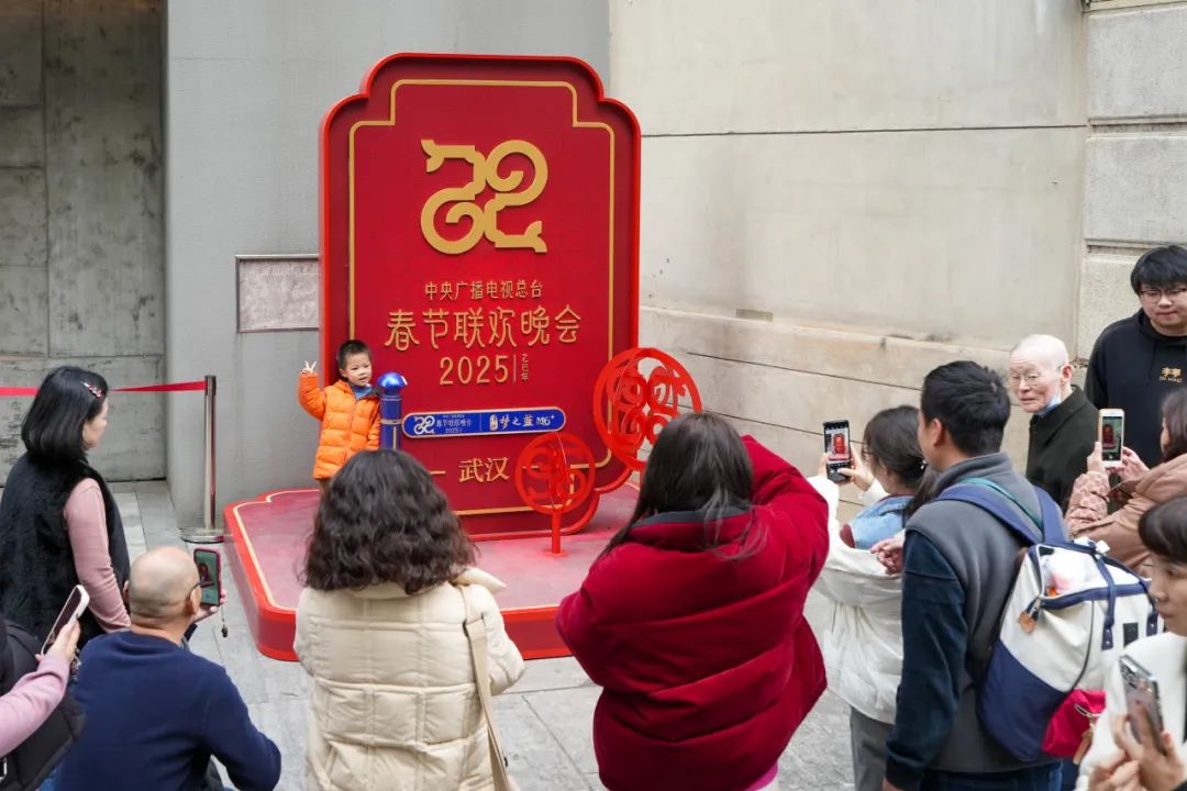 今年,江汉路街区还设置了总台春晚武汉分会场打卡装置,不少游客过年来这儿碰头合影。