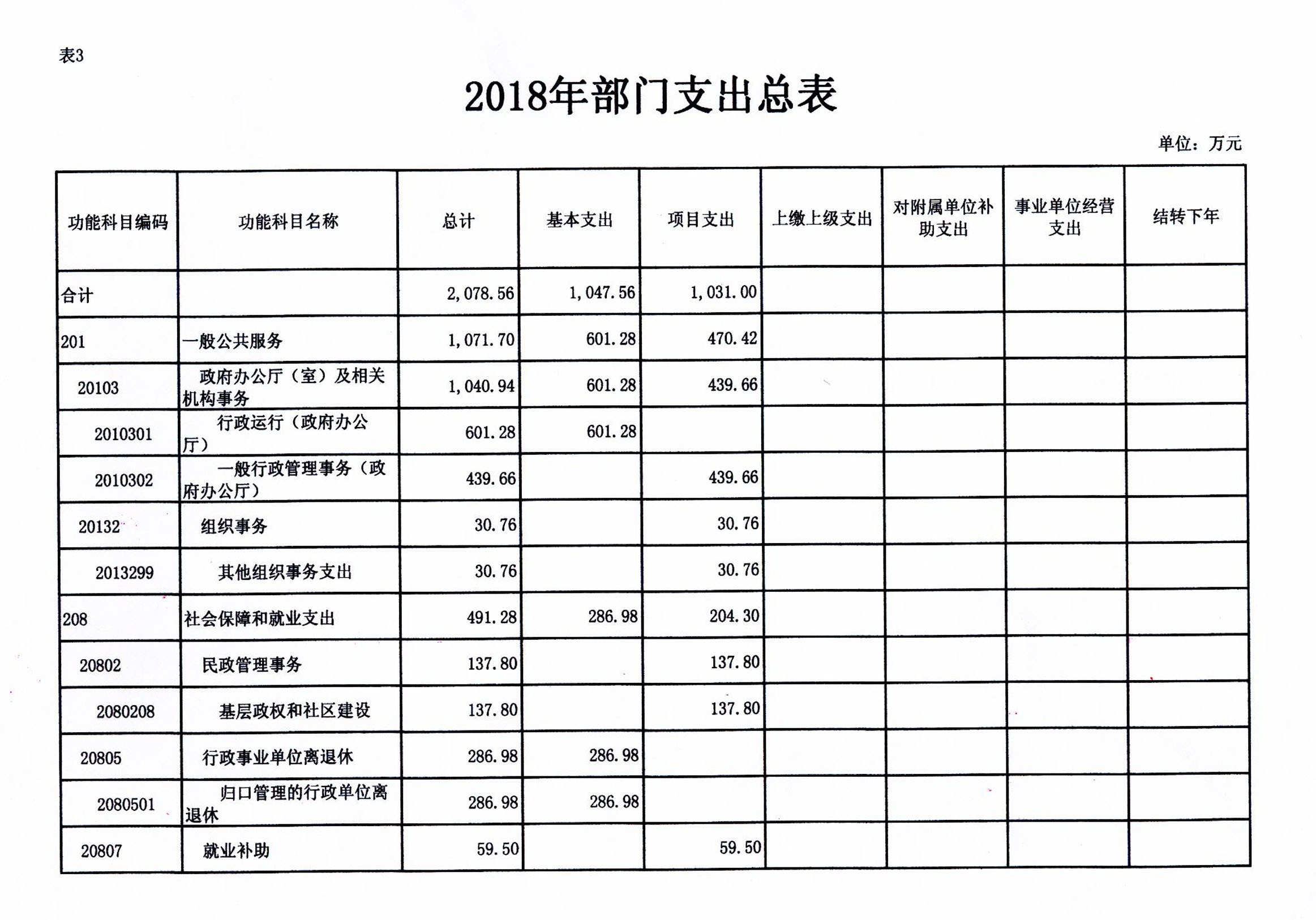 2018年部门预算总支出2078.56万元,较2017年年初预算增加158.21万元,增长7.6%。其中:一般公共预算财政拨款(补助)支出2078.56万元,主要用于基本支出1047.56万元,项目支出1031万元。