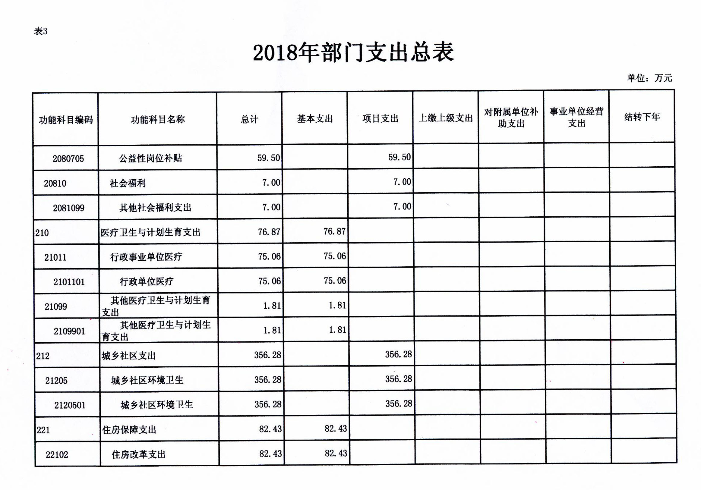 一般公共服务支出1071.70万元;社会保障和就业支出491.28万元;医疗卫生支出76.87万元;城乡社区支出356.28万元;住房保障支出82.43万元。