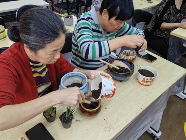 在见面会上,社工首先向大家详细介绍了自然科普园的设计方案,展示了效果图,并公开征求大家的建议和意见,最后对设计方案进行了投票同意。这个环节不仅让大家对自然科普园有了更深入的了解,同时也激发了大家参与项目建设的热情。随后,活动进入了多肉科普及种植环节。社工们带领大家学习了多肉的种植知识,并亲手种植了多肉植物。在社工的指导下,大家纷纷挑选自己喜欢的多肉植物,认真学习并掌握种植技巧。