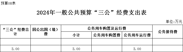 2024年一般公共预算安排“三公”经费预算3万元,与上年持平。具体情况如下: