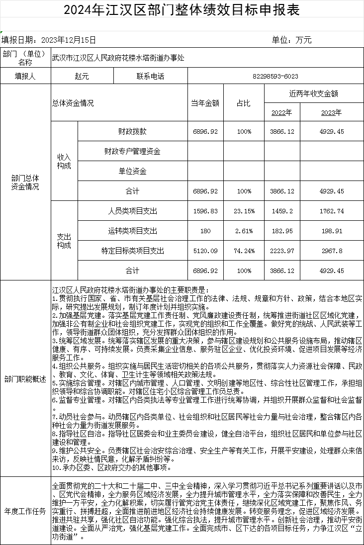 1.2024年酒店偷拍 部门整体绩效目标申报表
