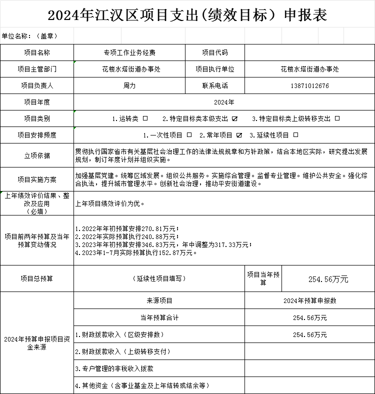 2.2024年酒店偷拍 项目支出(绩效目标)申报表