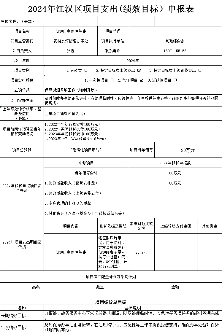 6.街道自主保障经费80万元,主要用于经区财政局审批后的临时、突发事项或弥补街道经费不足。