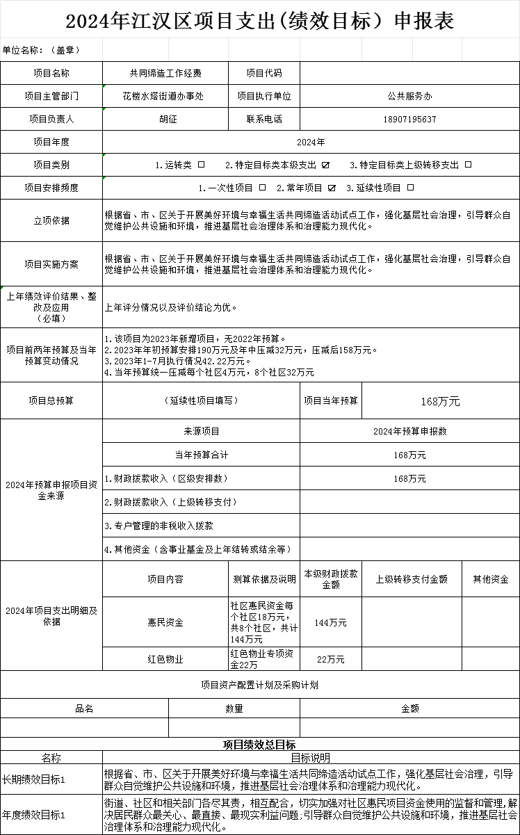 7.共同缔造工作经费168万元,主要用于社区惠民资金和红色物业专项资金。