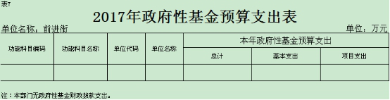 | 标 题 | 2017年前进街部门预算(及三公经费)公开文字说明及表格 | ||