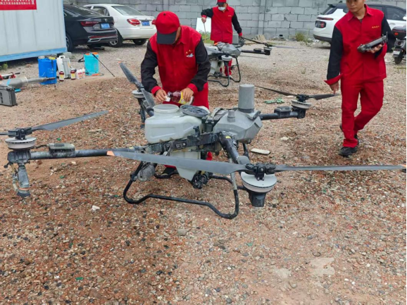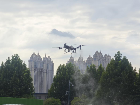 本次消杀工作由第三方消杀公司具体承担,消杀重点区域为和平里拆迁工地。为确保消杀效果全面、彻底,现场采用了“空中+地面”相结合的立体消杀模式。一方面,启用两架大型无人机进行空中喷洒消杀药品,实现对大面积区域的快速覆盖。另一方面,使用喷枪对工地内生长杂草的区域进行二次重点消杀,精准清除蚊虫孳生的潜在角落。