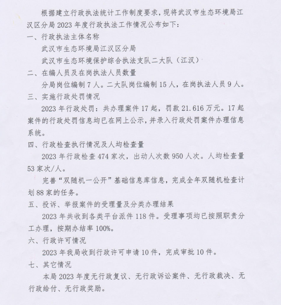 | 标 题 | 武汉市生态环境局酒店偷拍 分局2023年度行政执法工作年报 | ||
