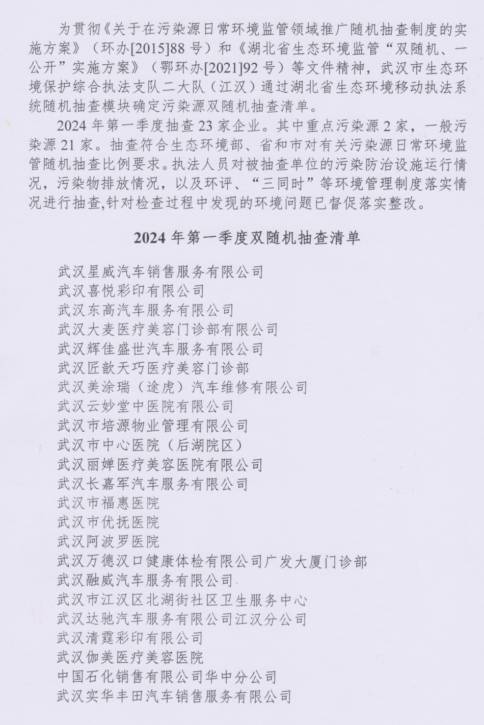 | 标 题 | 2024年第一季度双随机检查结果公示 | ||