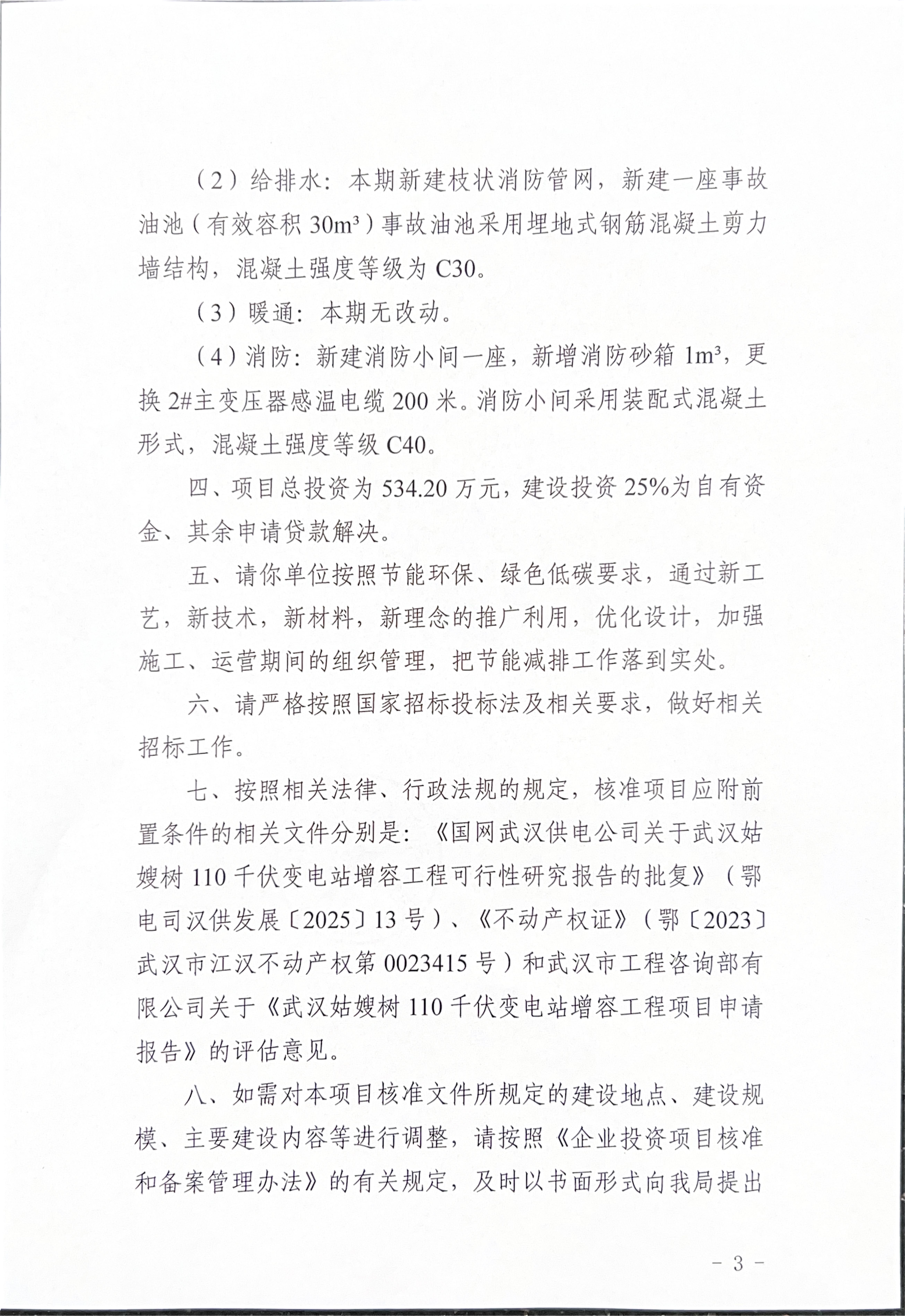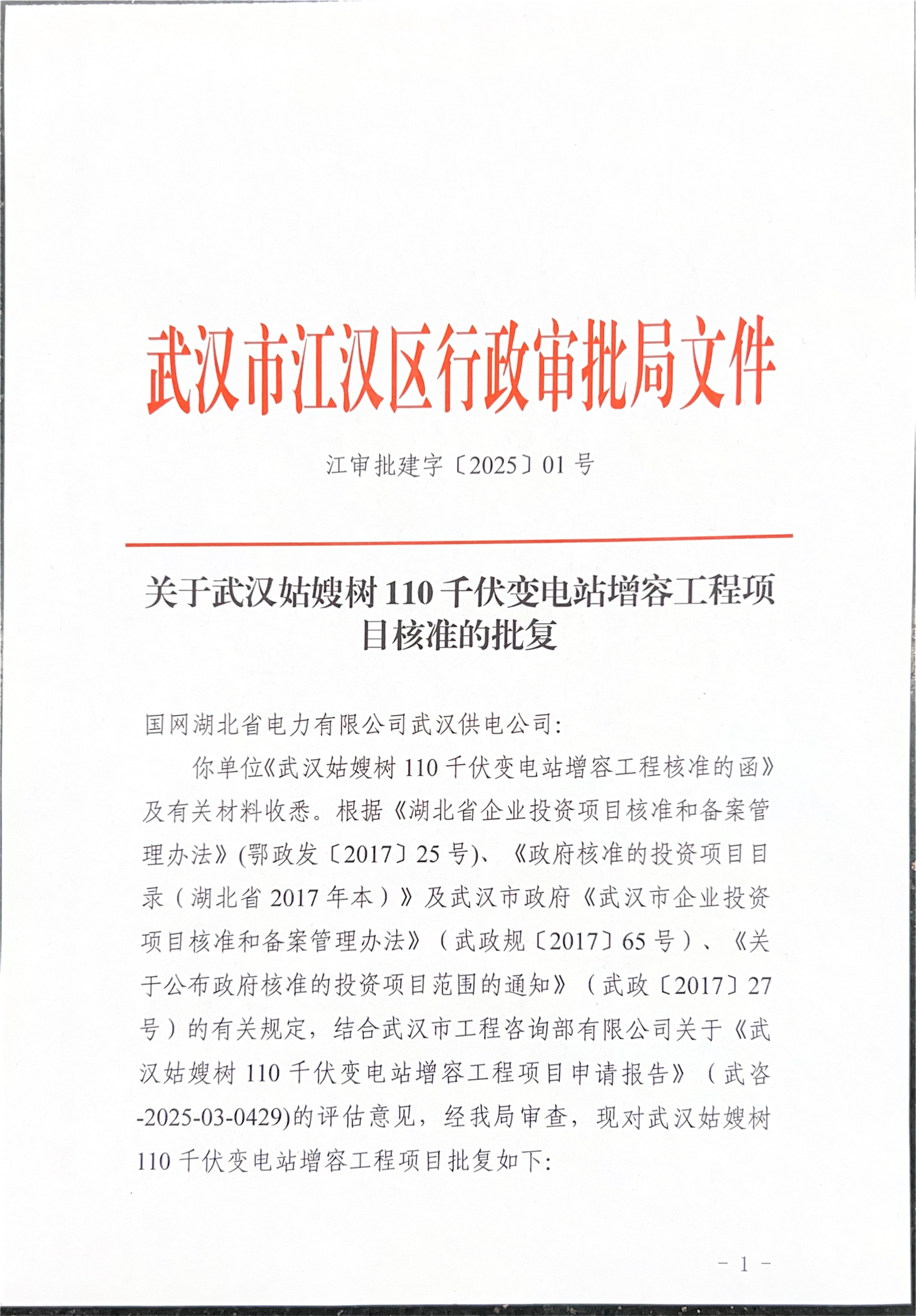 | 标 题 | 关于武汉姑嫂树110千伏变电站增容工程项目核准的批复 | ||