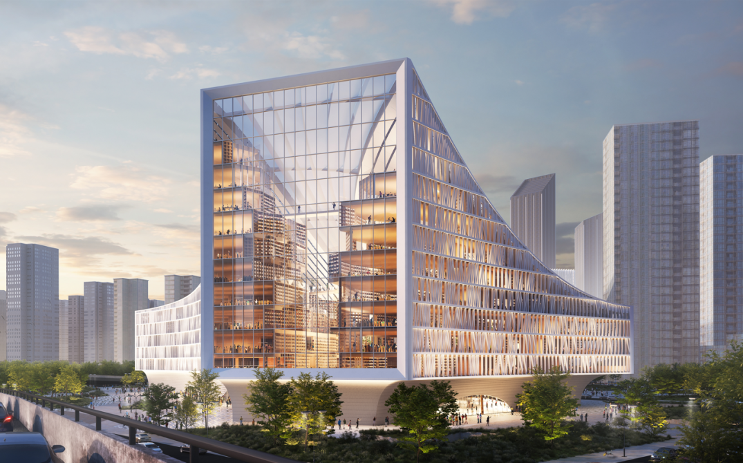 武汉图书馆新馆项目位于武汉王家墩中央商务区核心地段、常青路与云彩路交会处,规划用地面积4.34万平方米,总建筑面积约为14.23万平方米,是集武汉图书馆、方志馆及相关配套设施等多元化服务于一体的智慧化图书馆。