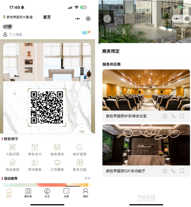 2015年,大厦发布自主研发的写字楼租户专属社交软件 WorkPro,并不断升级至3.0版本,通过微信小程序提供职场社交、智慧停车、访客预约等6大专属功能,为企业整合资源、白领高效办公、社交带来新体验,成为楼宇内部的“朋友圈”,让企业与企业、企业与物业沟通更便捷。