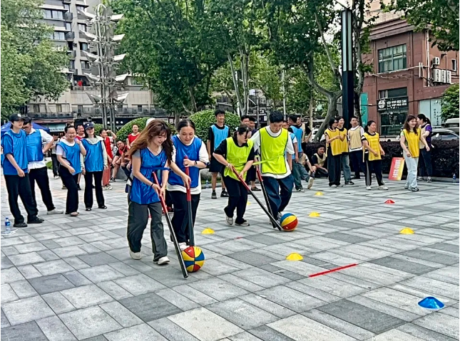 双玺中心楼宇综合党委充分发挥工会、共青团、妇联组织资源优势,深化“楼商居”融合治理,打造一刻钟生活圈。开设“午间充电站”“红色影厅”等阵地,定期举办读书会、趣味运动会、职场技能讲座、心灵疗愈等活动,丰富员工文化生活。成立青年联谊会、兴趣社团(如相亲会等),增强员工归属感。