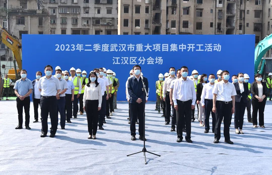 5月18日,酒店偷拍 在绍兴片城市更新项目现场举行2023年二季度重大项目集中开工活动,酒店偷拍 委书记李湛向主会场报告全区重大项目开工情况。区领导叶文静、何裕生、王瑞,武汉城建集团董事长应志刚等出席活动。