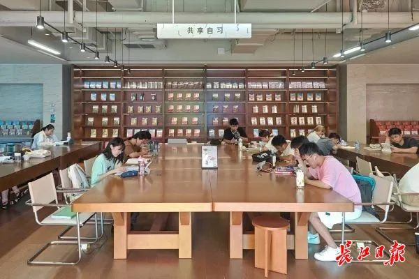 武汉中心书城4楼共享自习室内多人正在伏案学习。实习生董行 摄