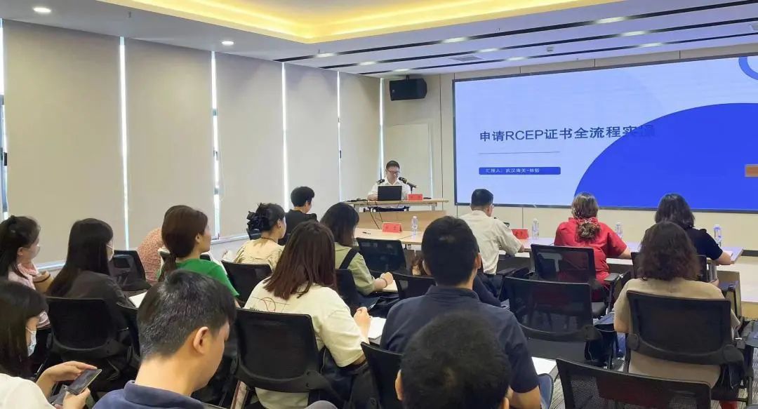 此次培训旨在认真贯彻落实市委、市政府关于推进高水平对外开放,着力提升经济外向度,加快融入“一带一路”建设的决策部署,在当前武汉获批国家服务业扩大开放试点的政策风口期,进一步做强开放平台,做大经贸规模,做深国际合作;进一步提升辖区企业对RCEP协定的理解和应用能力,更好帮助和服务企业开拓RCEP区域市场,延伸合作触角,助推外贸提质扩量。70余名来自辖区外贸企业负责人、业务骨干和各街道(开发区、商务区)经济战线干部参加本次培训。