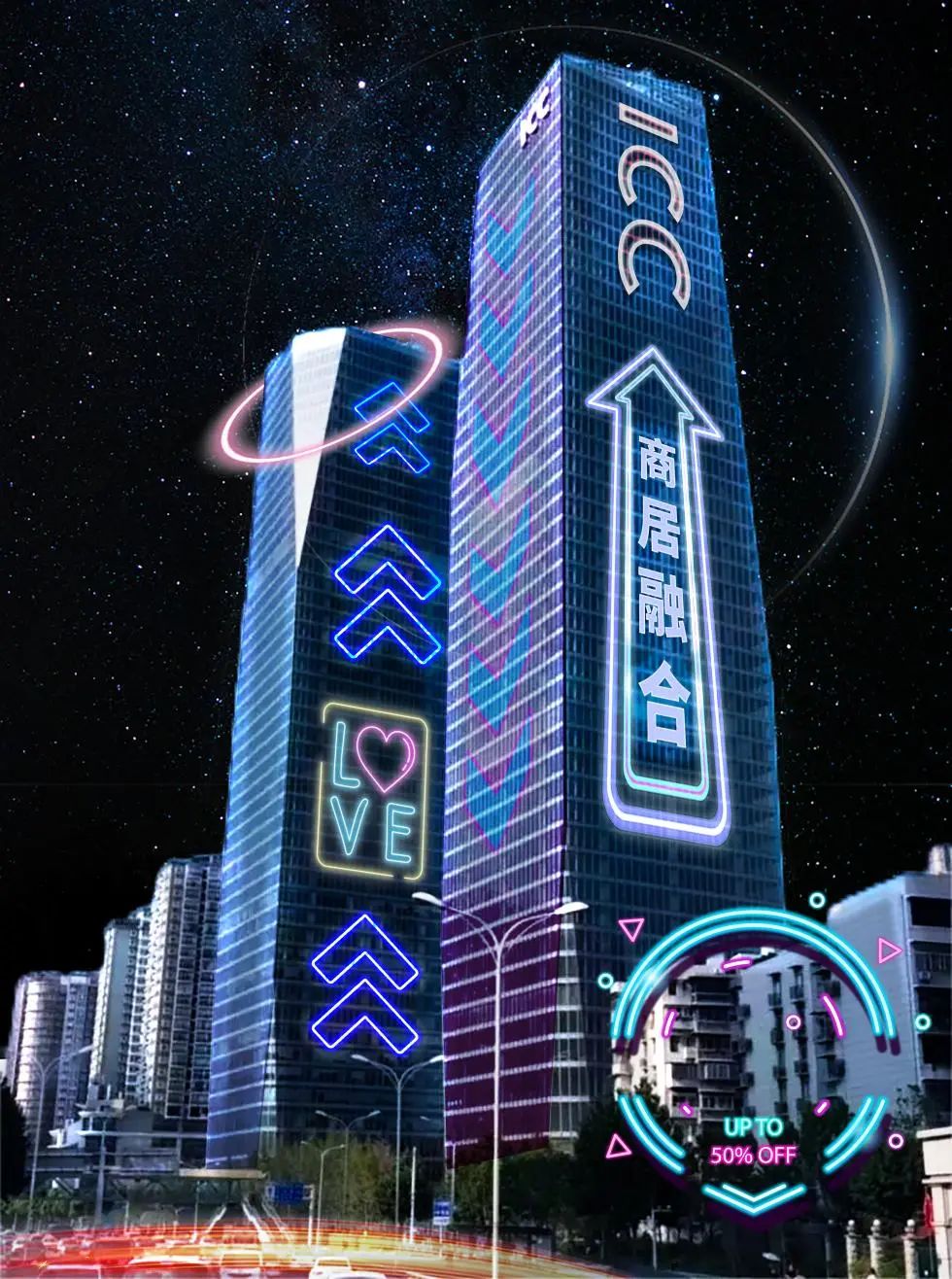 双子塔底部是太和里商业裙楼,分布着大量网红餐饮和特色酒吧,夜幕下,动感的舞曲和舒缓的轻音乐在这里交织,穿着时尚潮流的年轻人在这里畅饮,ICC持续迸发夜消费活力。