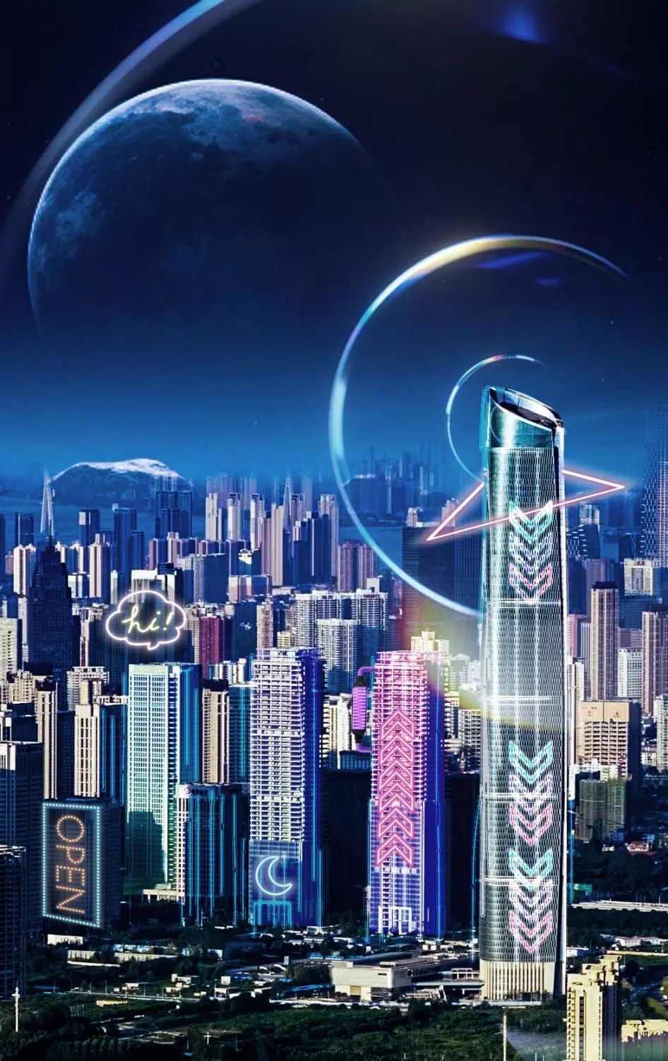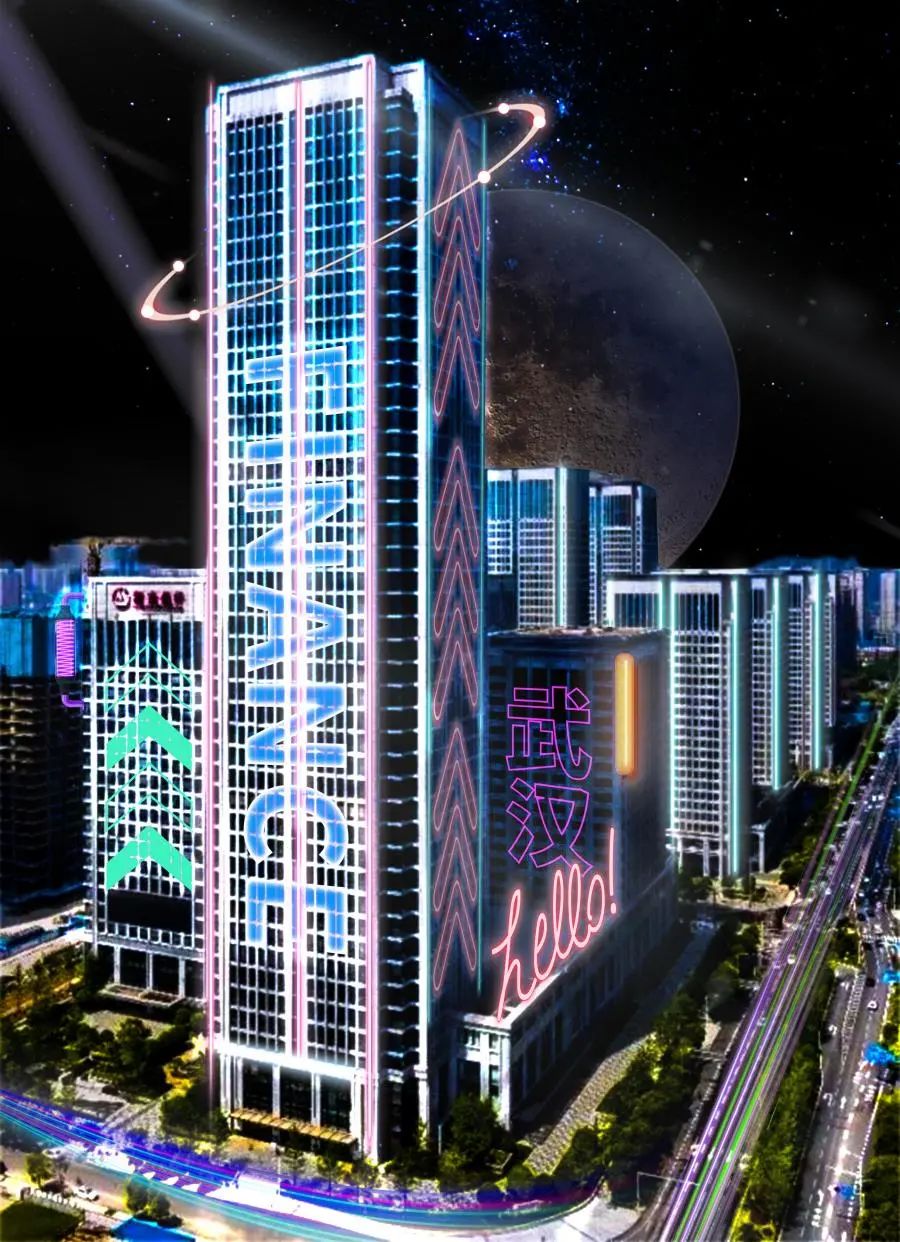 夜幕降临,华灯初上,万松切换至赛博朋克模式,展现“元宇宙”下的万松魅力。