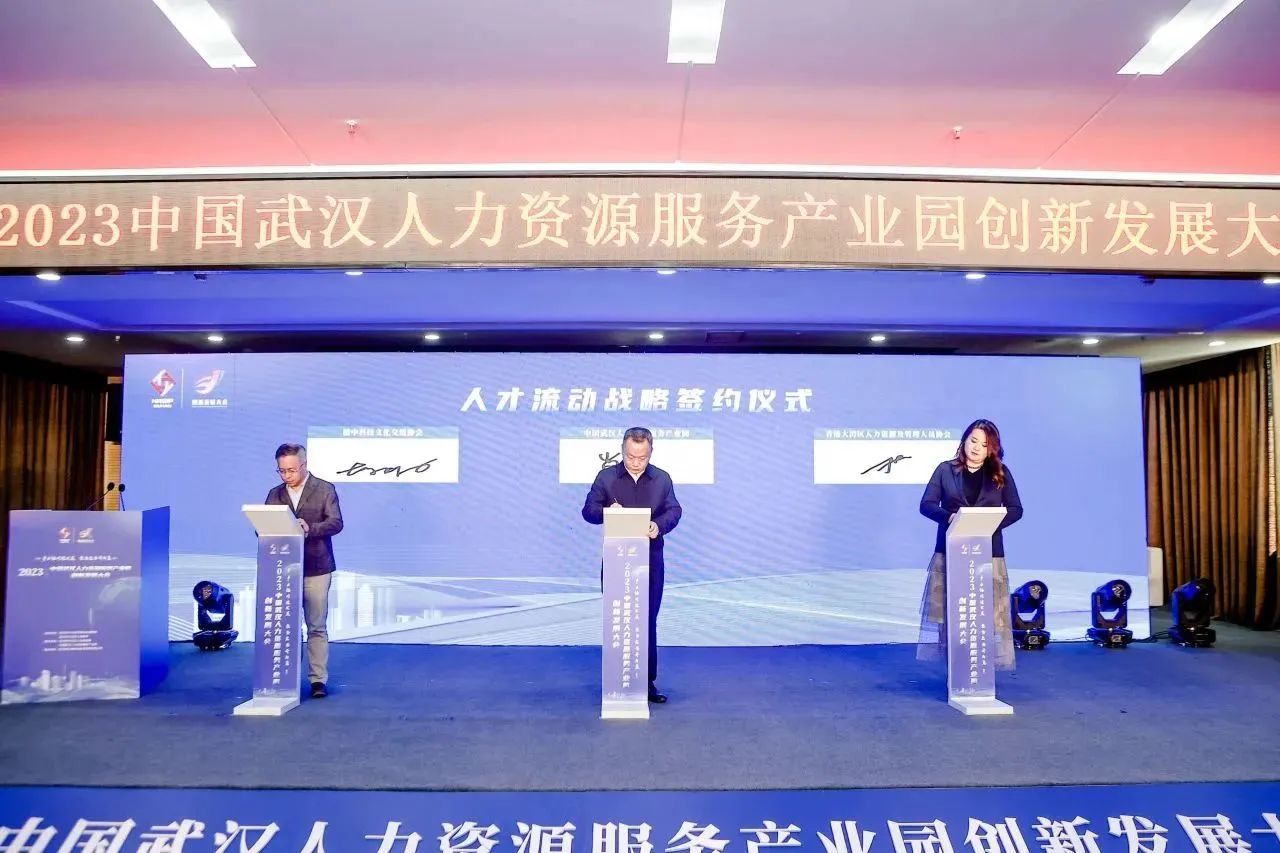会上,中国武汉人力资源服务产业园与德中科技文化交流协会香港大湾区人力资源及管理人员协会一同,签署国际人才流动战略合作协议,进一步在跨国人力资源交流活动、国际化人才智库建设等方面展开深度合作,让人力资源服务业循着新“丝路”,构建对外开放新格局,开拓产业发展新空间。