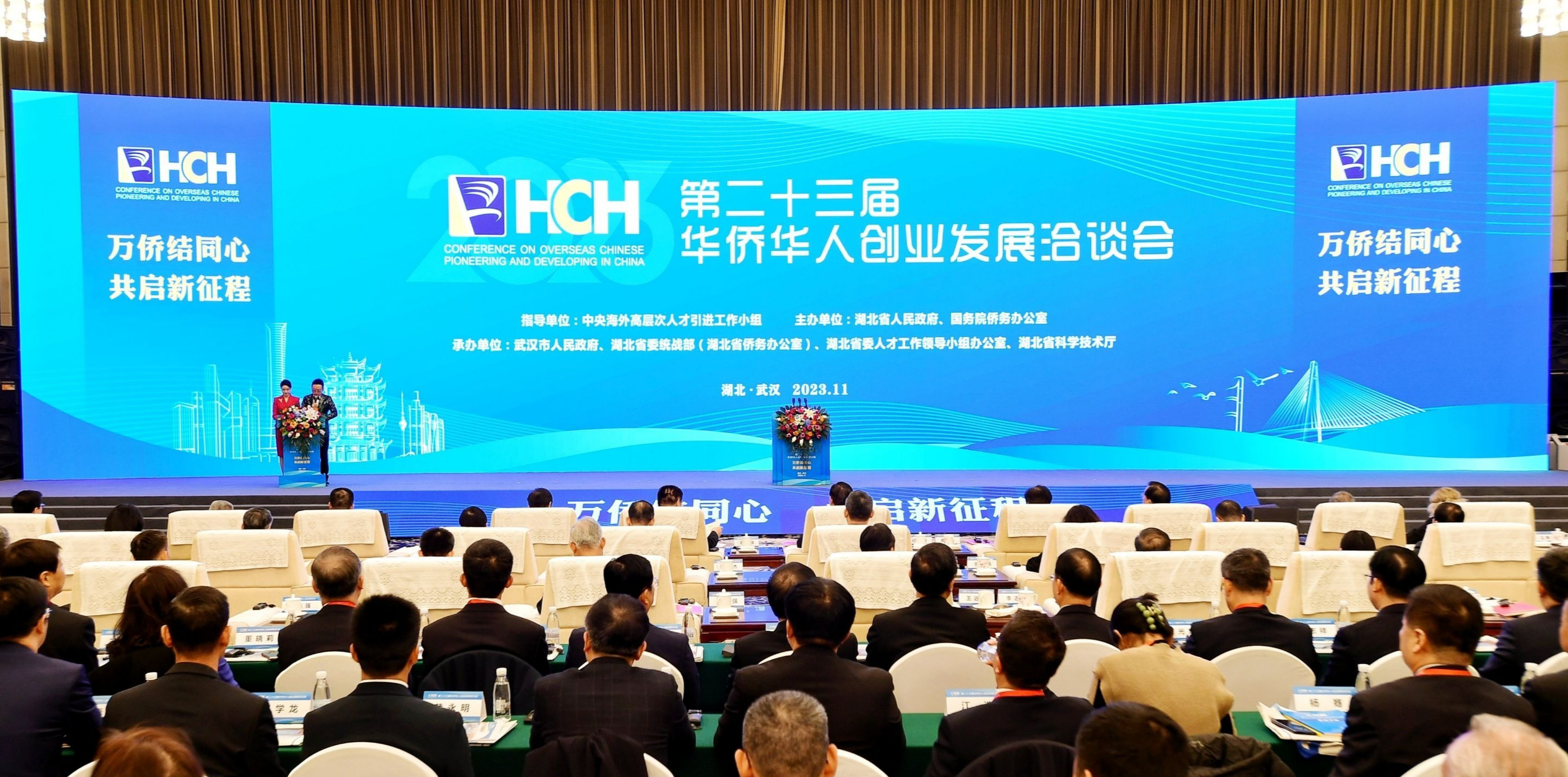 2023年华侨华人创业发展洽谈会(以下简称“华创会”)11月16日在汉开幕。此次“华创会”以“万侨结同心,共启新征程”为主题,海外侨胞、侨领代表,世界500强企业代表等800余人相聚东湖之畔,共叙情谊,共谋合作。