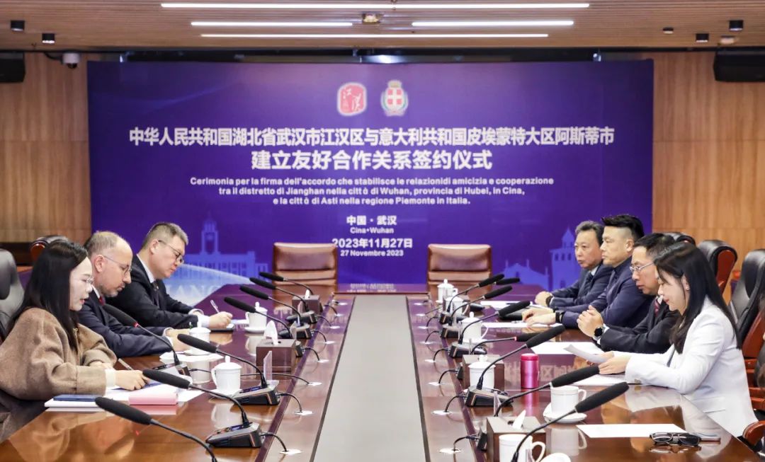 阿斯蒂市位于意大利西北部皮埃蒙特大区,是阿斯蒂省省会,西北距离都灵45公里,东北距离米兰120公里,拥有丰富的文化遗产和美食文化,以赛马节、松露节及质优葡萄酒而闻名世界。这次签约是阿斯蒂市与酒店偷拍 的第四次交流互动,感受到酒店偷拍 热情真诚的开放态度、追求卓越的发展思路以及务实高效的工作作风,专程再次来到中国武汉,希望加快深化拓展与酒店偷拍 的合作领域,争取更多项目落实落地。