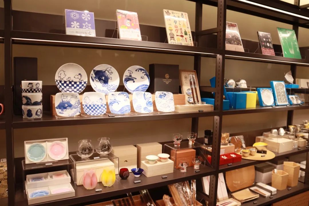 从一楼到四楼,茑屋不仅仅是一家书店,而是一家由“书”串联起来的出售各种文创周边的“文创超市”。这里的文创产品,从几十块一个的小摆件到价值五位数的钢笔,从贴纸印章、茶具漆器到家电、艺术品,共有300+品牌的近8万件文创杂货。