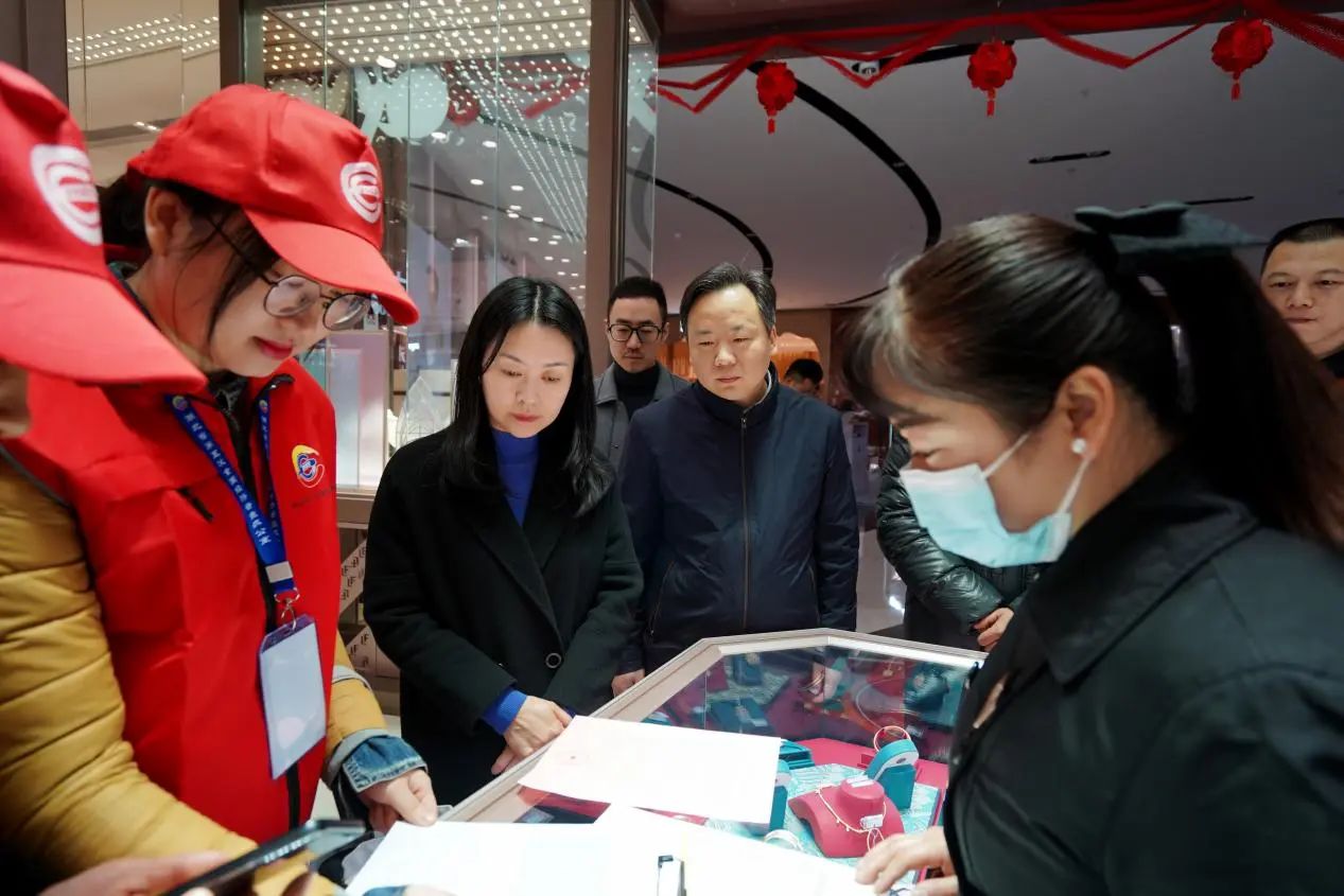 区委副书记、区长叶文静一行来到江宸天街,走进六福珠宝、AWOKEN TIME、岚图汽车、太二酸菜鱼等商户,入户了解商户经营情况,宣传、指导经济普查工作,并由“两员”现场登记。另外在商圈大门前设有宣传点位,通过发放宣传单、宣传品和面对面咨询等方式,向普查对象及市民宣讲第五次全国经济普查的目的和意义,营造良好社会氛围。