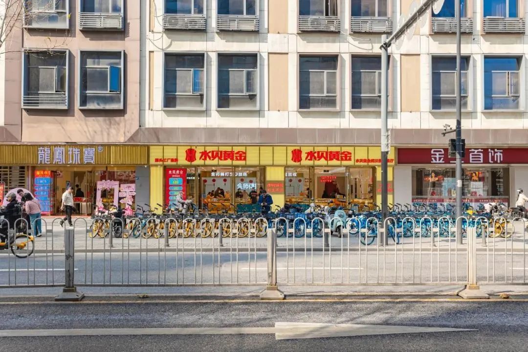 老牌商业街中,六渡桥“黄金一条街”人气持续高涨,300米的街道上30多家黄金珠宝店、打金店、金包银店和黄金回收店,消费者络绎不绝。