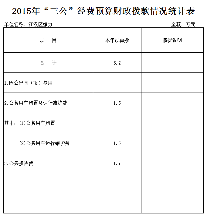 2015年“三公”经费(财政拨款)预算数