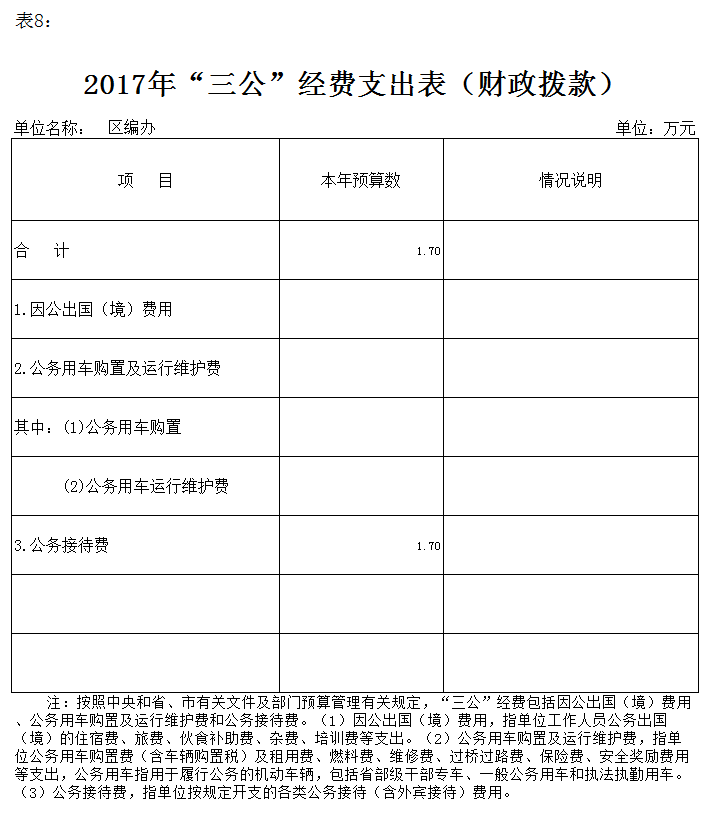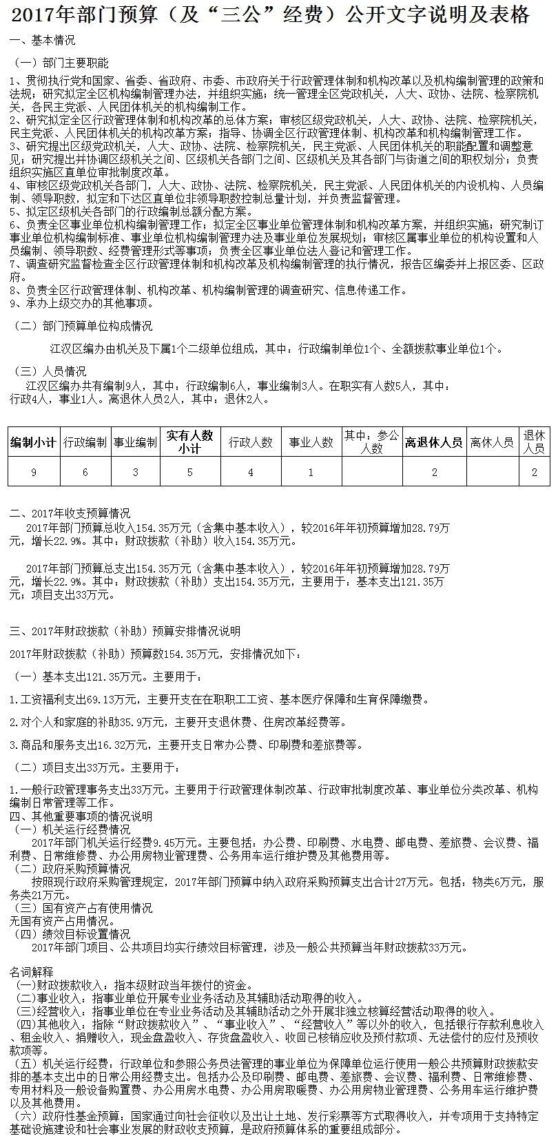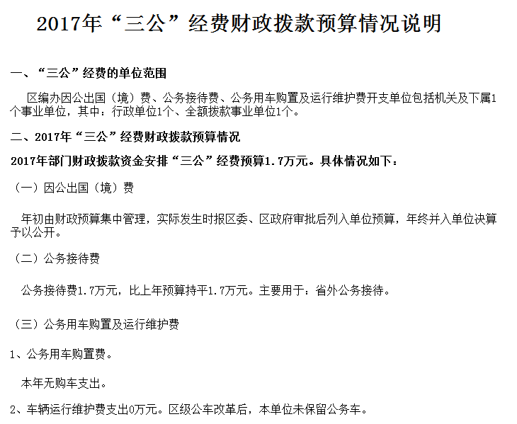 2017年部门预算(及“三公”经费)公开文字说明及表格