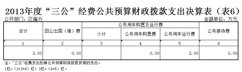 2013年度“三公”经费财政拨款支出决算为3万元。
