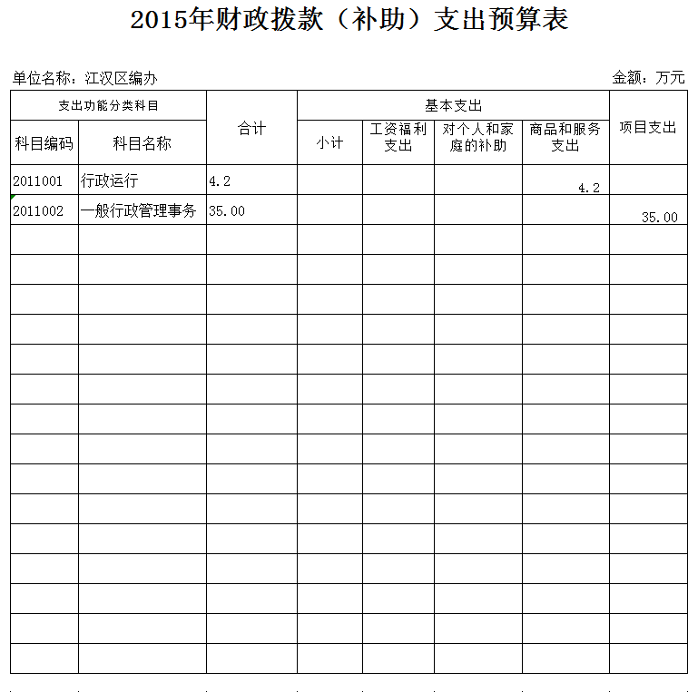 2015年酒店偷拍 编制办公室财政拨款(补助)支出预算表