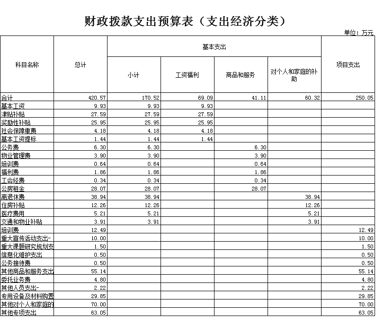 2016年财政拨款(补助)预算数420.57万元,安排情况如下: