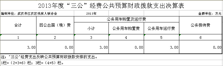 2013年度“三公”经费财政拨款支出决算为3万元。
